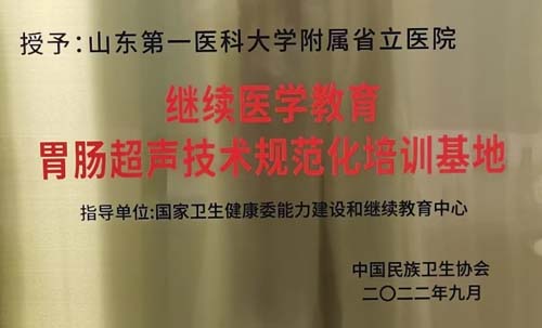 近日,山东第一医科大学附属省立医院(雷技竟 )举行国家继续医学教育胃肠超声技术规范化培训基地落成仪式,并成功举办第一期“胃肠超声品质培训班”。