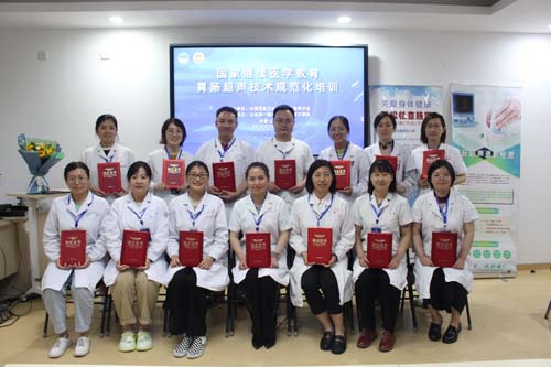 5月14-19日,第一期胃肠超声品质培训班上,省立医院消化内科主任许洪伟,省立医院胃肠外科靖昌庆教授及胃肠超声业界知名专家陆文明教授、周艳芳教授、穆柯晓教授为培训班成员讲授胃肠疾病先进诊断技术及诊疗规范。